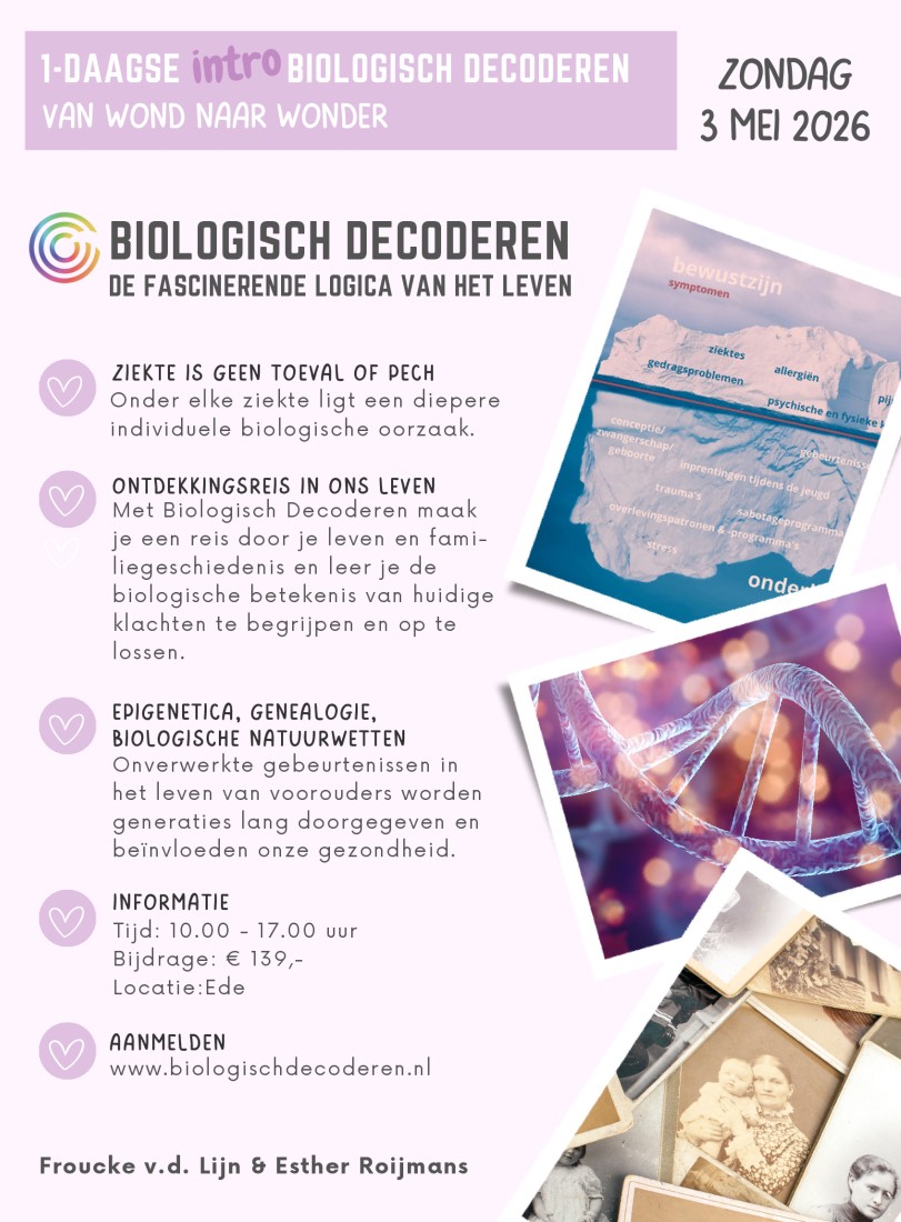 ▸27 december 2025 - 🤸♀️ 'Gym Instuif' bij Hiawatha-ede ▸3 Mei 2026 - Introdag Biologisch Decoderen (Esther Roijmans & Froucke van der Lijn)